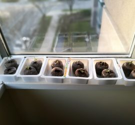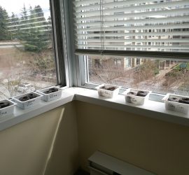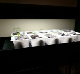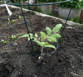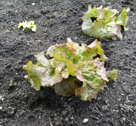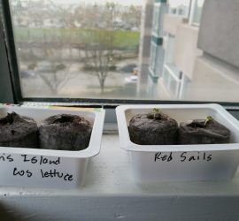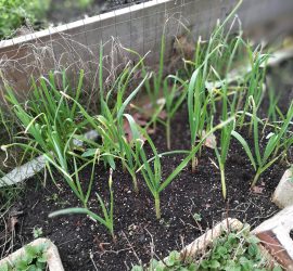 We planted some spinach and wildflower wseeds outside today, after weeding out plot. Â We have some garlic growing along the fence, and the strawberries are looking to come back as well.