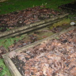 We covered the garden with fallen leaves for the winter.  We also planted garlic today.