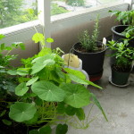 On our deck we have tomato plants, parsley, oregano, rosemary, mint, and nasturtiums.