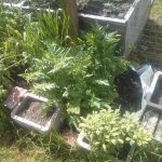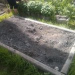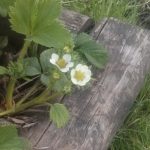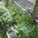 We visited the garden today, and our strawberry plants are taking over one of the boxes. Â We’ve planted sunflowers, but no sign of them yet.