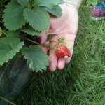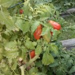 Surprisingly, we found a couple of new strawberries in the garden today. Â And one is almost ripe! Â The tomatoes continue to ripen as fast as we can pick them.